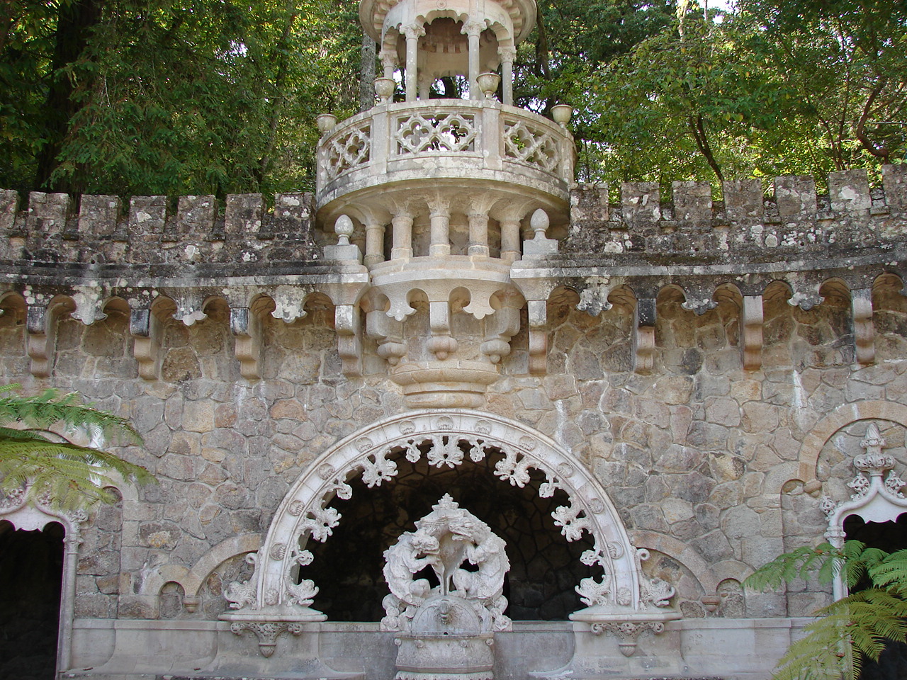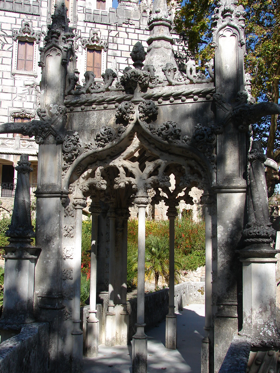 Acest Paradis privat este proiectat de un burghez lusitan , Antonio Carvalho Monteiro , la începutul secolului al XIX-lea . Pe lângă Palat , putem vizita parcul reședinței cu superbele sale grădini , cu diversele peșteri repartizate peste tot , turnuri , lacuri , un parc cu o variată și exuberantă vegetație , onorând gustul pentru botanică al proprietarului , sculpturi ale divinităților clasice , fântâni și diverse clădiri pentru personalul ce-l deservește . Ca să vizitezi totul trebuie să aloci două ore și împreună cu biletul vei primi un plan care este foarte util în a vizita parcul .