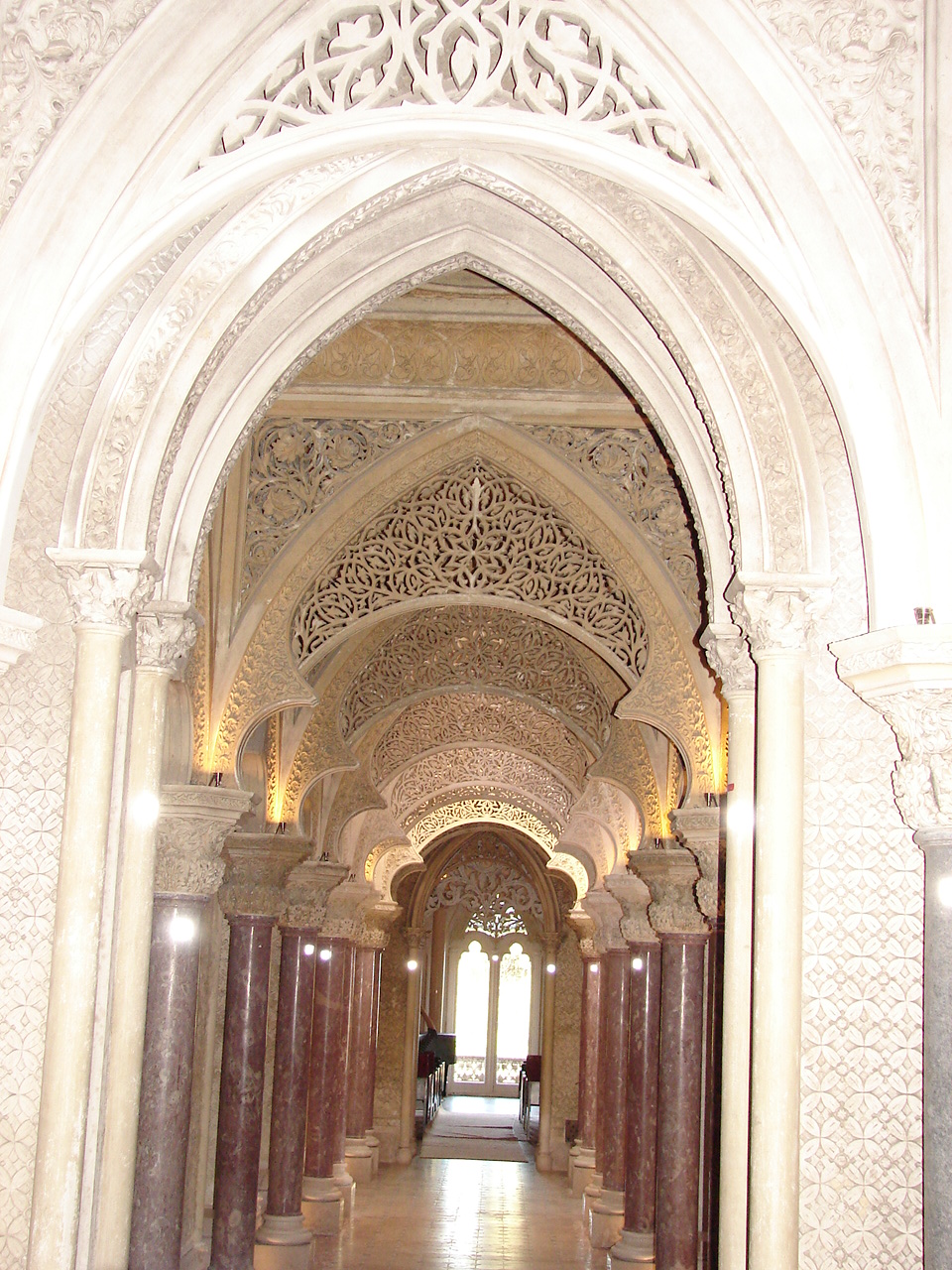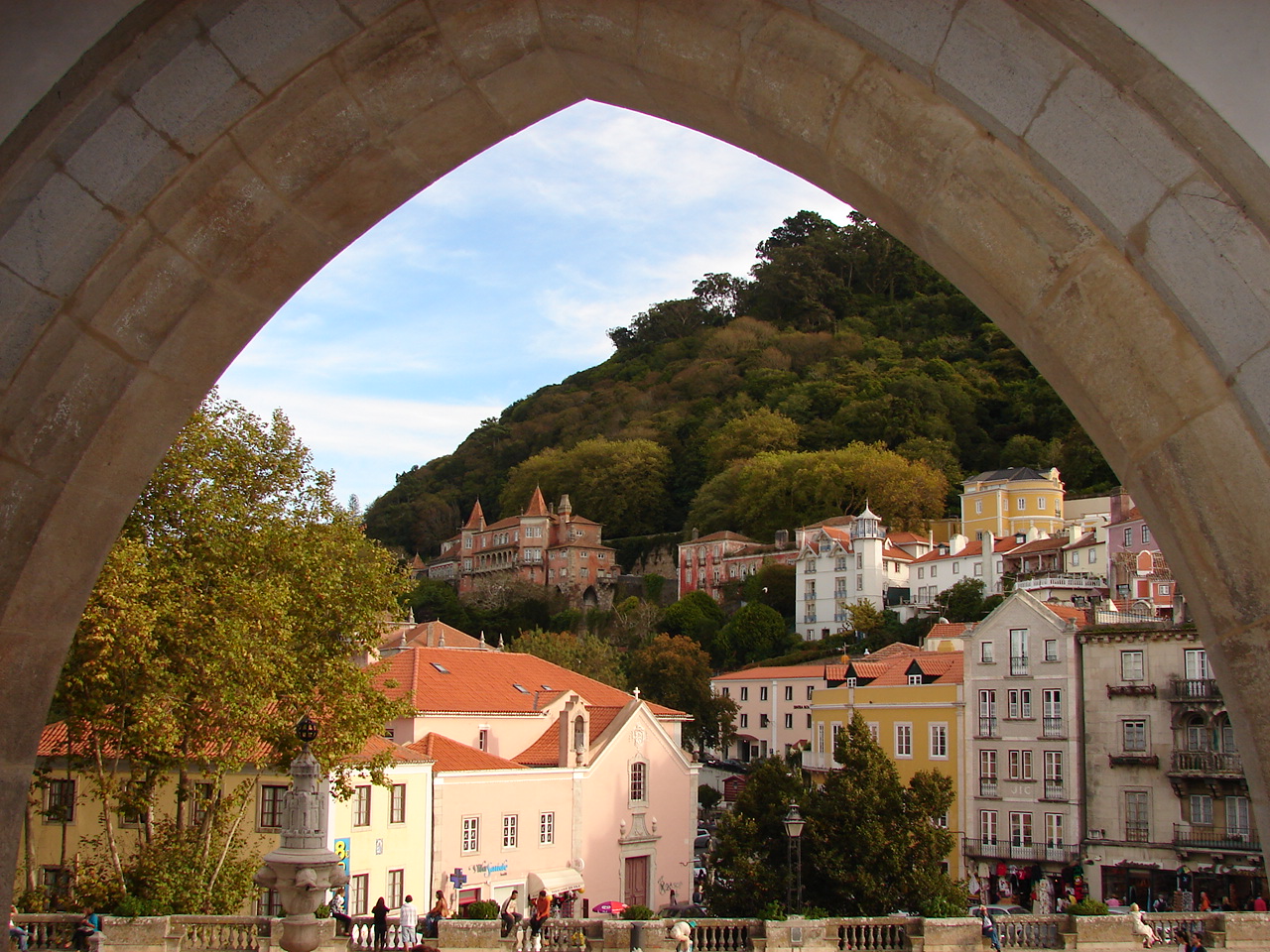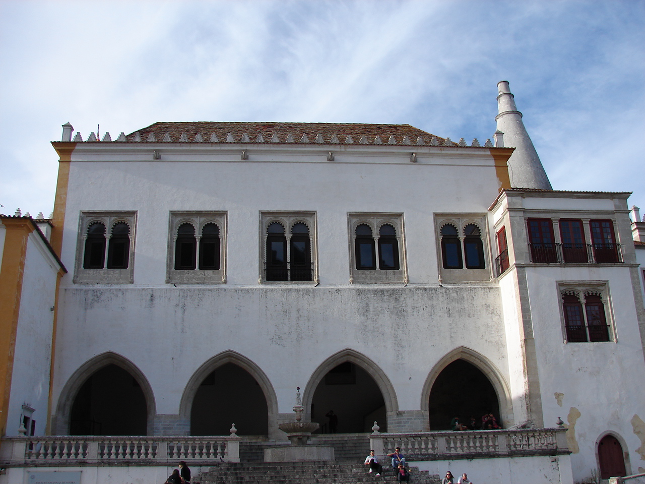 frumusețea locului . Trecând de primarie , se observă coșurile conice ale Palatului regal , sau Paca do Vilha cum îi spun localnicii , imagine simbolică aș putea spune a orașului, paznici de secole ai reședinței monarhice luse . Silueta lor domină orașul Sintra . În același loc a fost și palatul califilor arabi ce au fost stăpâni acolo . După Recucerire , dinastia Avilor va fi aceea care va începe reformarea lui si mai presus de toți , regele Manuel I care s-a inspirat din ceea ce văzuse prin călătoriile sale prin Andaluzia . Monarhul și-a adus din Spania vecină meșteri în arta mudehară , meseriași în arta construirii de arcuri și grădinari pricepuți în a-i face grădini suspendate.