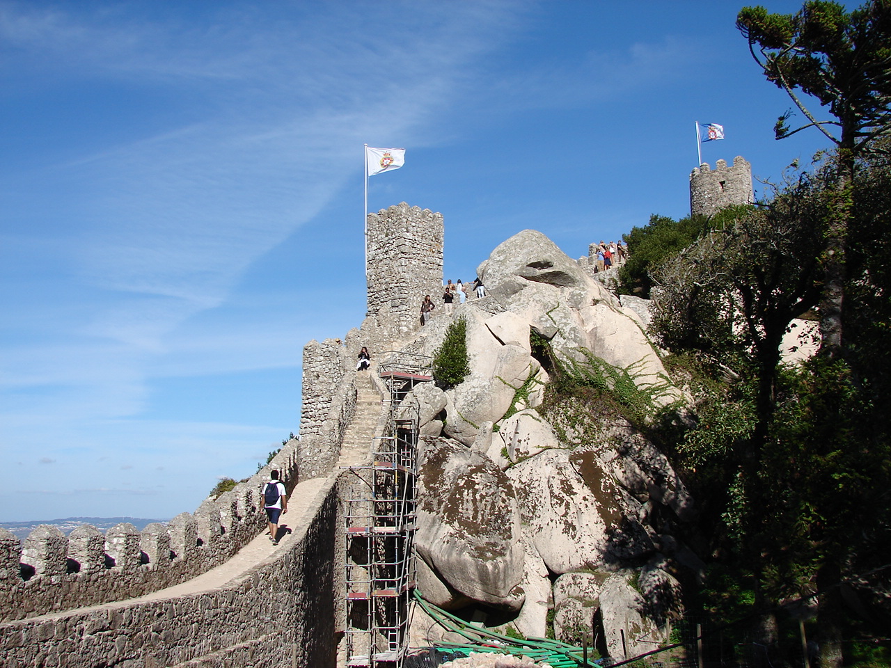 Astfel ajungem la Castelul Maurilor sau cum i se spune acolo , Dos Mouros , ce a fost ridicat de califii arabi ca fortăreață și punct strategic de apărare . Puținul ce a rămas din fortăreața originală a fost restaurat de cel de al doilea soț al reginei Maria , Fernando de Coburg , la mijlocul secolului al XIX-lea . Potecile sale ne conduc spre resturile unei biserici romanice și de asemeni pe zidurile fortăreței ce sunt bine conservate.