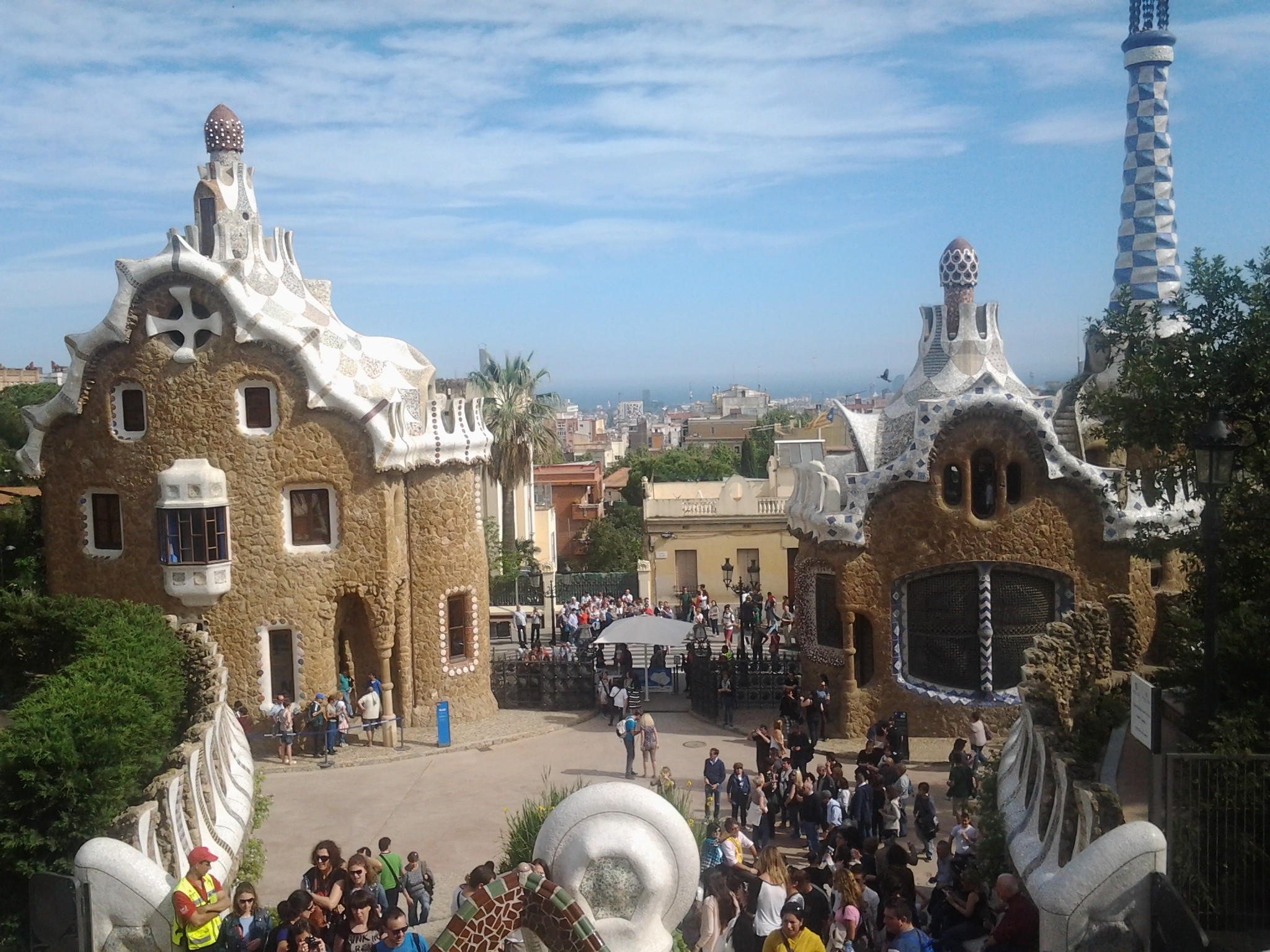 Din partea se sus a parcului putem admira priveliștea orașului Barcelona . Parcul este un loc magic și ciudat ce te surprinde plăcut dacă îl vezi . O vizită a Barcelonei nu este completă fără o plimbare prin Parcul Guel , dar vă dau un sfat , sa nu fie de sărbatori sau în lunile de concediu. Este foarte aglomerat.