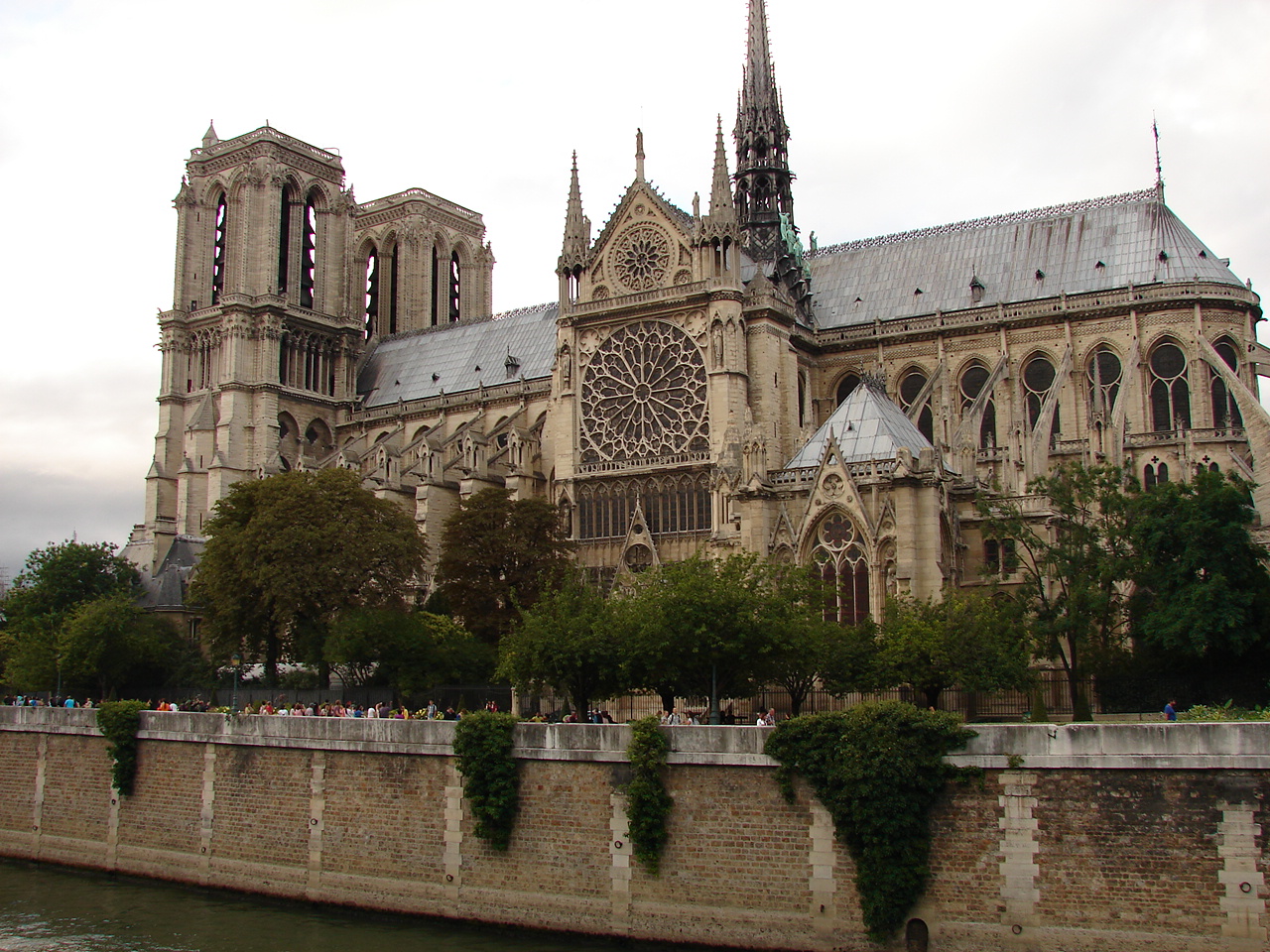 O vom vizita ca oricare alt credincios , ca sa vezi partea de sus , să urci pe acoperiș sau să vezi cripta trebuie să te prezinți la rând de dimineață pentru a prinde un bilet pentru ziua în curs . Așa că ne mulțumim cu a vedea doar ce se poate prin interior , este seară și încă e plină de turiști și o admirăm dinspre exterior bucurâdu-ne de priveliștea sa . După o plimbare prin Ile de Saint Louis venim iarăși în apropierea Catedralei și ne despărțim de această parte a Parisului și a primei zile noastre aici de pe podul din apropiere , plin de lacăte , este podul celor îndrăgostiți …