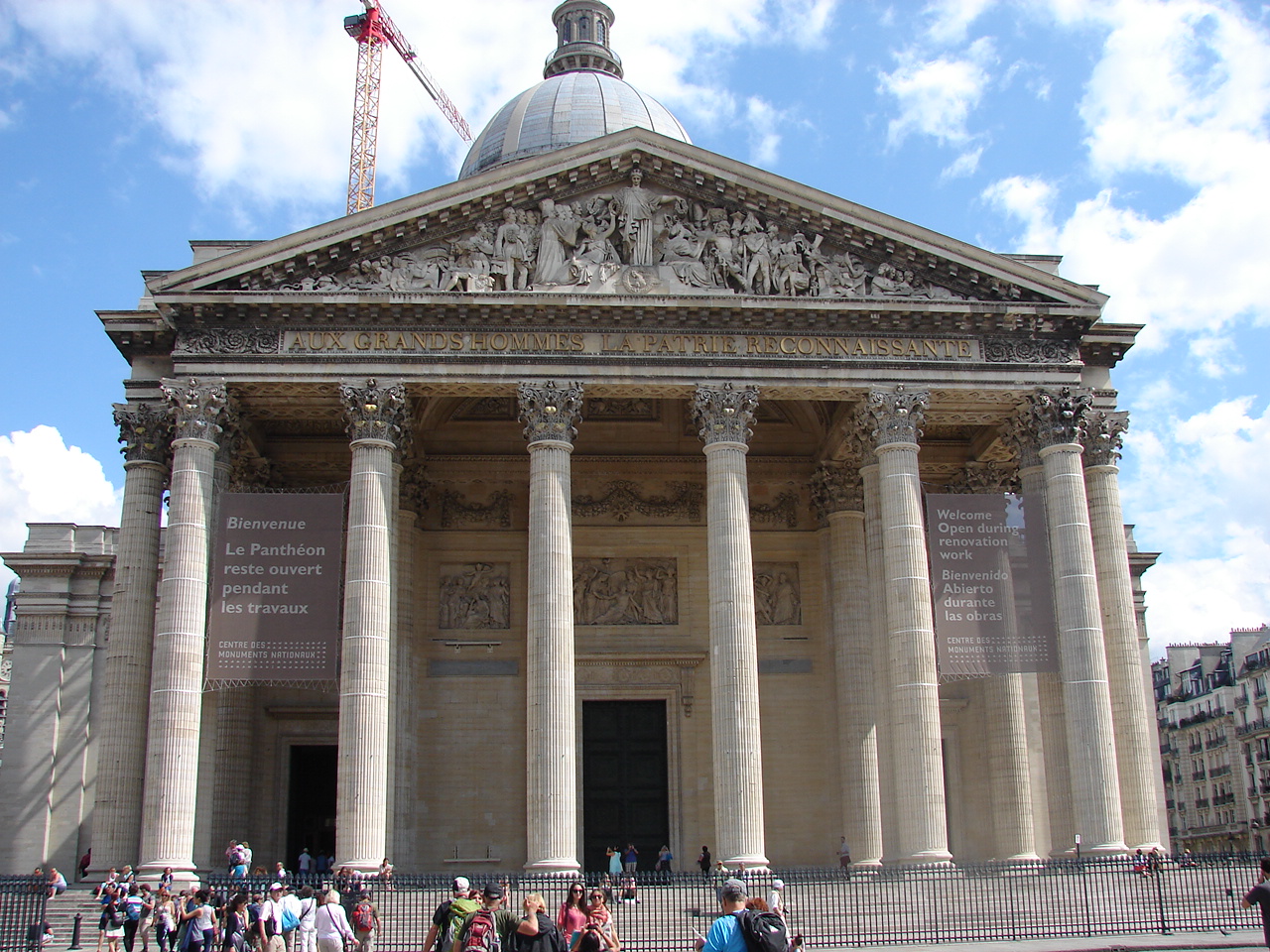 Mergând pe bulevardul Saint Michel din cartierul Latin se ajunge la Panteon sau la Grădinile Luxemburg . Acesta a fost primul monument de importanță al Parisului , construit între anii 1764-1790 și combină arhitectura greacă cu cea gotică . De-a lungul istoriei sale a avut diferite utilizări ; în secolul al XIX-lea a avut una atât religioasă cât și patriotică depinzând de regimul politic . Sub regimul celei de a Treia Republici odată cu funeraliile lui Victor Hugo , Panteonul s-a convertit într-un edificiu ce adăpostește corpurile oamenilor iluștri francezi . Aici se găsesc criptele lui Voltaire , Rousseau , Hugo, Marie Curie , Luis Braille , Jean Monnet , Alexander Dumas . Un loc ce trebuie văzut , în opinia mea , atât pentru arhitectura sa exterioară cât și a criptelor .