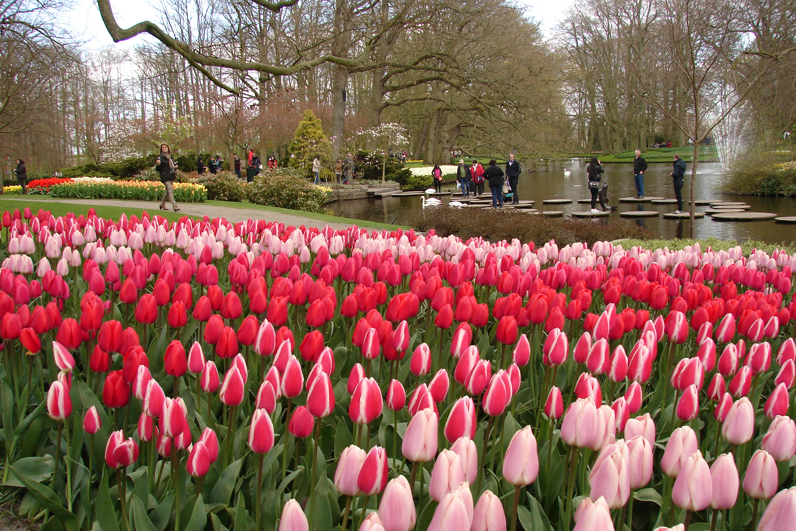 De-a lungul celor 40 de kilometri ce separă grădina de Amsterdam se întinde „ Bloembollenstreek ” , sau țara lalelelor , o interminabilă succesiune de câmpuri ce concentrează cea mai intensă cultură a acestei plante din lume , iar de la marginea acestora te privesc diferite specii de păsări , fazani ,rațe sau gâște care sunt la ele acasă . O bună formă de a parcurge acest teritoriu este în bicicletă , terenul este plan și traseul foarte plăcut . Dacă vrei să vezi câmpurile de flori trebuie să vizitezi Olanda în aprilie și mai . Este momentul în care cel mai mare parc floral din lume își deschide porțile (are 15 kilometri de alei ) . Cea mai bună epocă pentru a vizita parcul este jumătatea lunii aprilie , atunci când poți întâlni florile în splendoarea lor și când poți admira toate tipurile de flori ce se plantează .