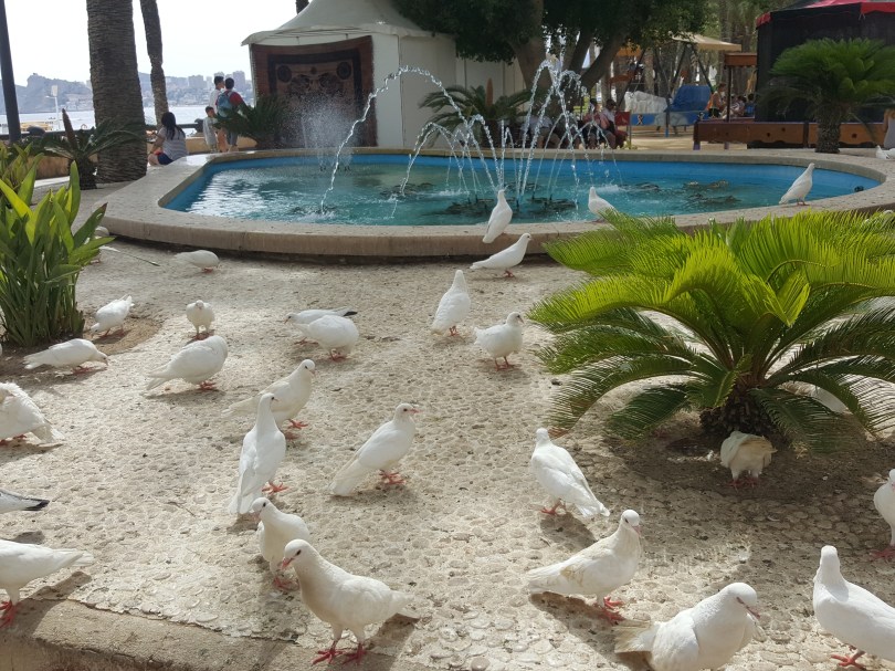 Parcul Elche locul de joacă al copiilor și al porumbeilor albi .