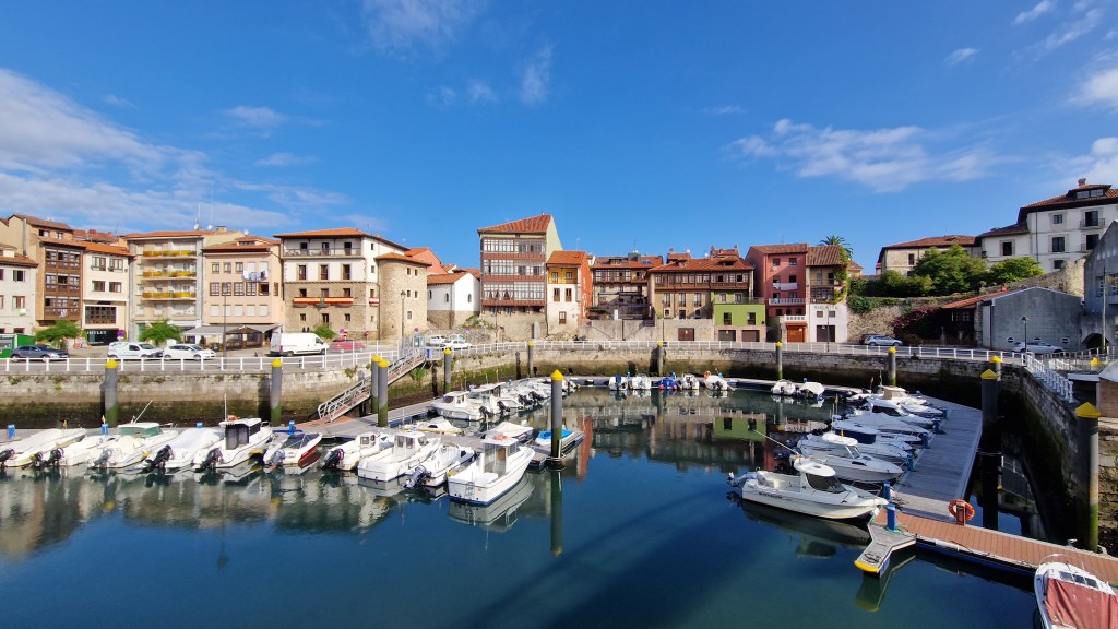 Călătoria noastră prin Llanes am început -o în port , ce are un canal asemănător cu cel al Veneției . Un port deosebit de frumos , unde veți întâlni Los Cubos de las Memoria , opera pictorului basc Ibarrola, cuburi din beton pictate în diferite culori , ce au rolul de a proteja portul de valurile oceanului .