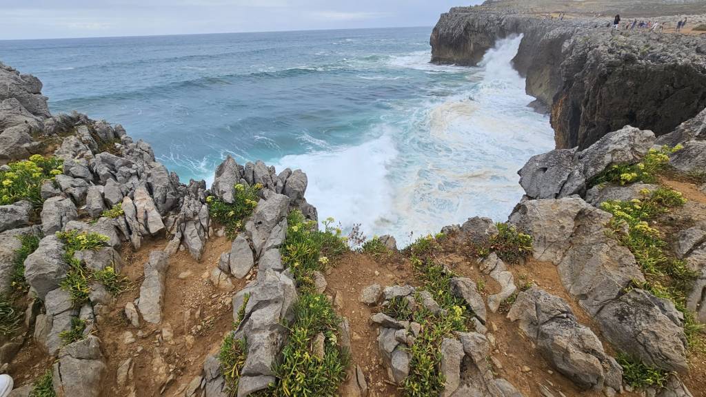 Los Bufones de Pria sunt cei mai impresionanți din Spania. Pe coasta din Llanes, Asturias, putem admira Los Bufones de Pria niște coșuri deosebite care expulzează apa sub presiune ca un gheizer provocând un sunet caracteristic . Am dorit de mult să vedem spectacolul natural al apei printre stânci . Dar nu a fost să fie ! Trebuie să mergeți toamna sau iarna nu vara ca noi !